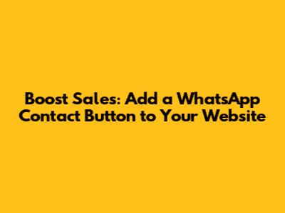 Boost Sales: Add A WhatsApp Contact Button To Your Website