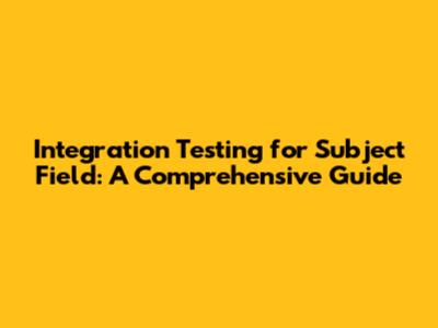 Integration Testing For Subject Field: A Comprehensive Guide