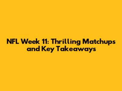 NFL Week 11: Thrilling Matchups And Key Takeaways