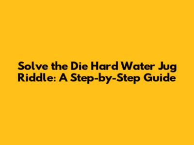 The Die Hard 3 water jug riddle is a captivating example of how problem-solving can be both challenging and rewarding. By understanding the step-by-step solution and practicing different variations, you can sharpen your logical thinking and enhance your ability to tackle real-world problems. So, next time you encounter a seemingly impossible challenge, remember the water jug riddle and approach it with a systematic and creative mindset.