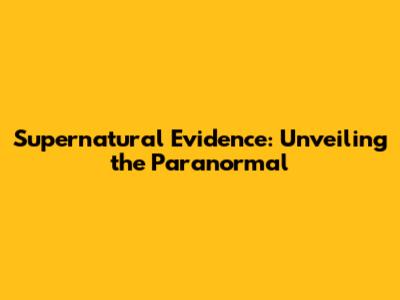 Supernatural Evidence: Unveiling The Paranormal